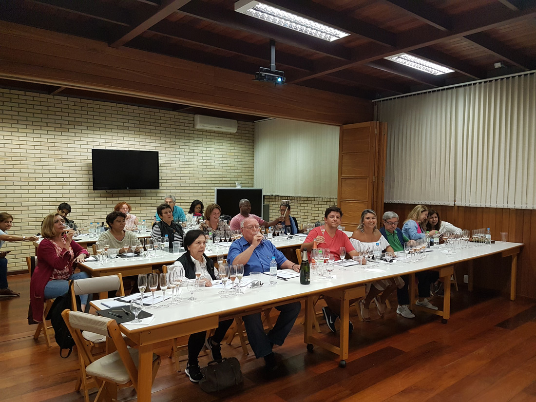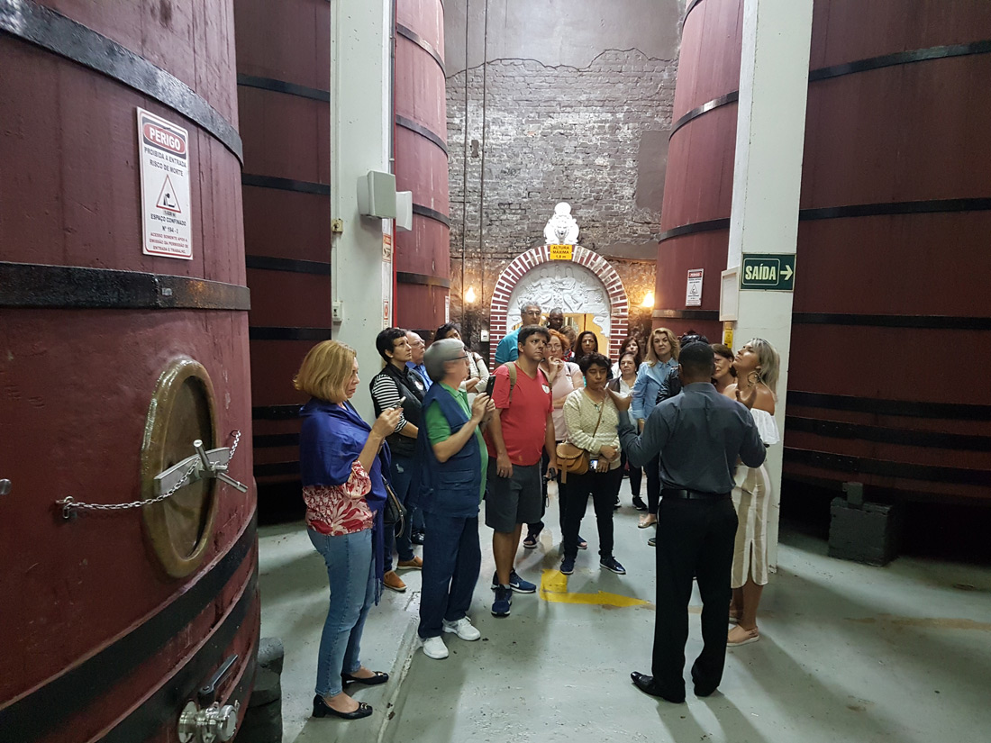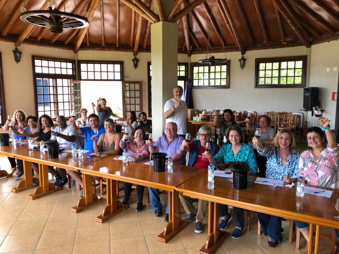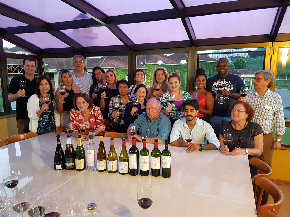 No passeio – uma verdadeira aula prática – o grupo teve a oportunidade de conhecer todo o processo de vinificação, explicado pelos próprios enólogos; conferir pessoalmente tudo o que foi aprendido nas aulas teóricas; e acompanhar ao vivo o processamento das uvas, desde a recepção na cantina até a elaboração final do vinho.