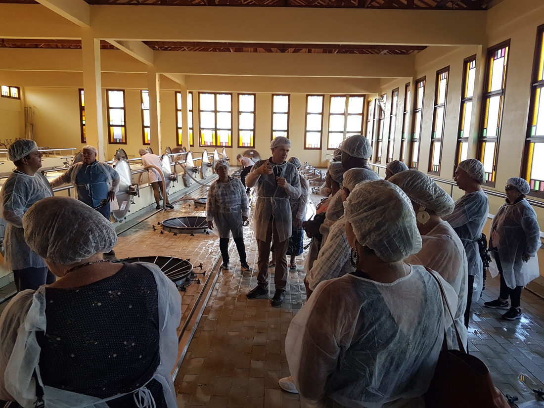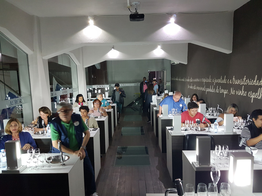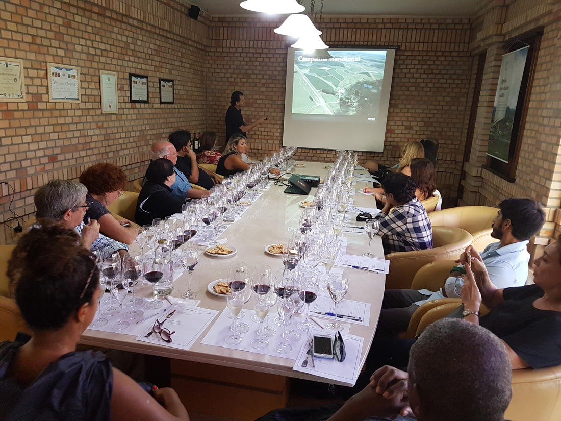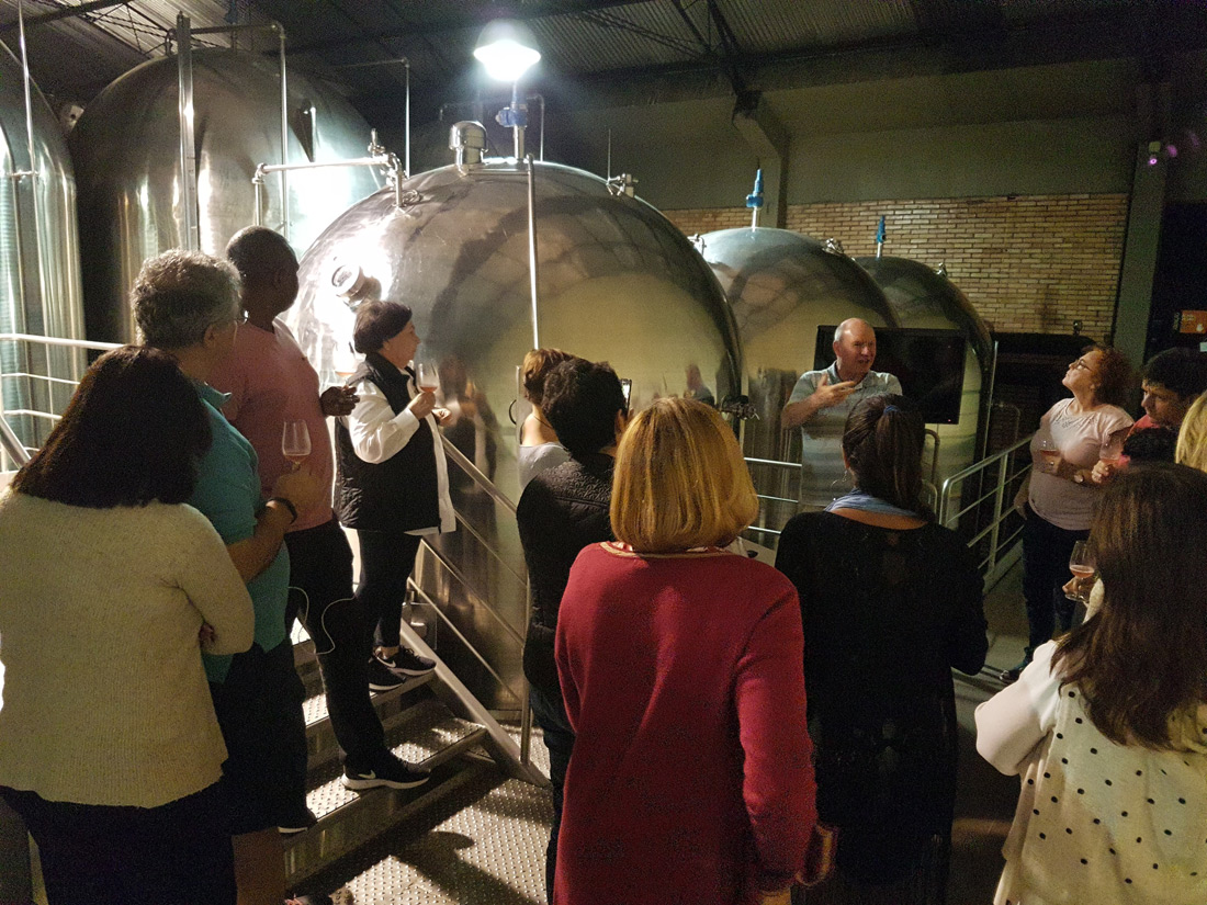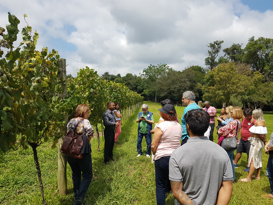No passeio – uma verdadeira aula prática – o grupo teve a oportunidade de conhecer todo o processo de vinificação, explicado pelos próprios enólogos; conferir pessoalmente tudo o que foi aprendido nas aulas teóricas; e acompanhar ao vivo o processamento das uvas, desde a recepção na cantina até a elaboração final do vinho.