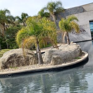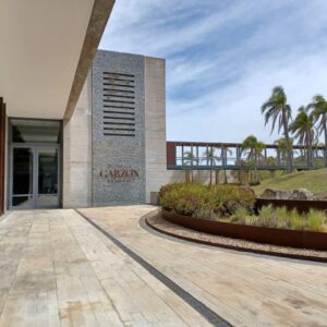 Isso de certo modo é a tônica dos terrenos mais a leste do país – com áreas de relevo mais inclinado, favorecendo a drenagem e a insolação. Ali começamos a notar as mudanças do solo argilo-calcário para porções mais arenosas e com a presença de rochas de granito erodidas, denominadas balastro. Isso é bem marcante na constituição geológica dos vinhedos da Bodega Garzon, visita seguinte que muito impressiona qualquer um pela grandiosidade de suas instalações. A vinícola já recebeu prêmios internacionais pela exuberância deste projeto, recebe muitos turistas e seus vinhos já ganharam muitos adeptos no Brasil.