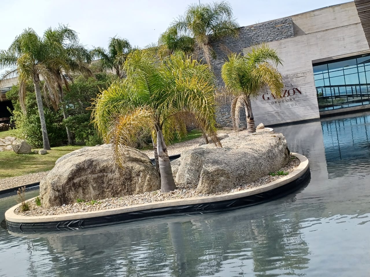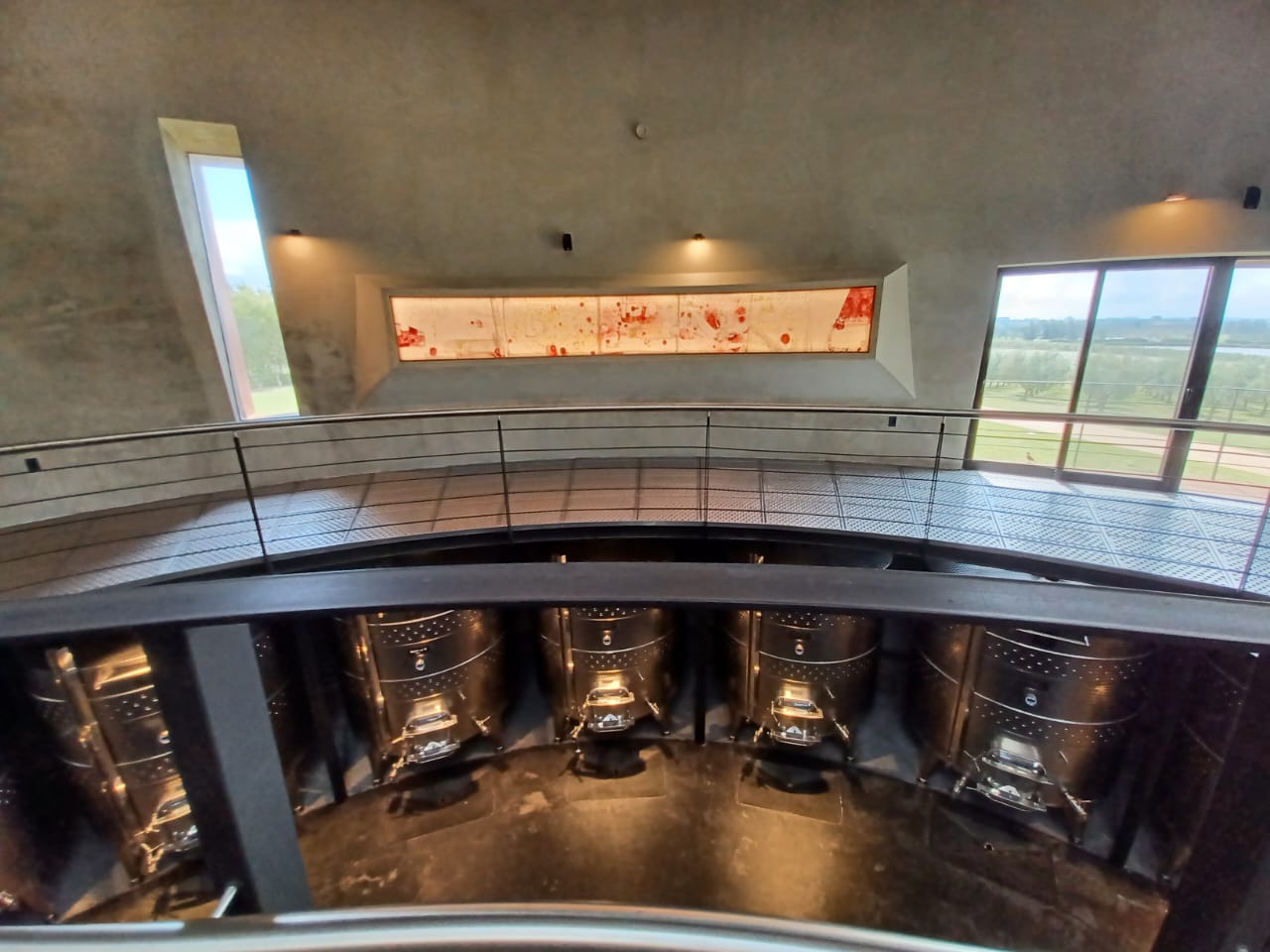 Isso de certo modo é a tônica dos terrenos mais a leste do país – com áreas de relevo mais inclinado, favorecendo a drenagem e a insolação. Ali começamos a notar as mudanças do solo argilo-calcário para porções mais arenosas e com a presença de rochas de granito erodidas, denominadas balastro. Isso é bem marcante na constituição geológica dos vinhedos da Bodega Garzon, visita seguinte que muito impressiona qualquer um pela grandiosidade de suas instalações. A vinícola já recebeu prêmios internacionais pela exuberância deste projeto, recebe muitos turistas e seus vinhos já ganharam muitos adeptos no Brasil.