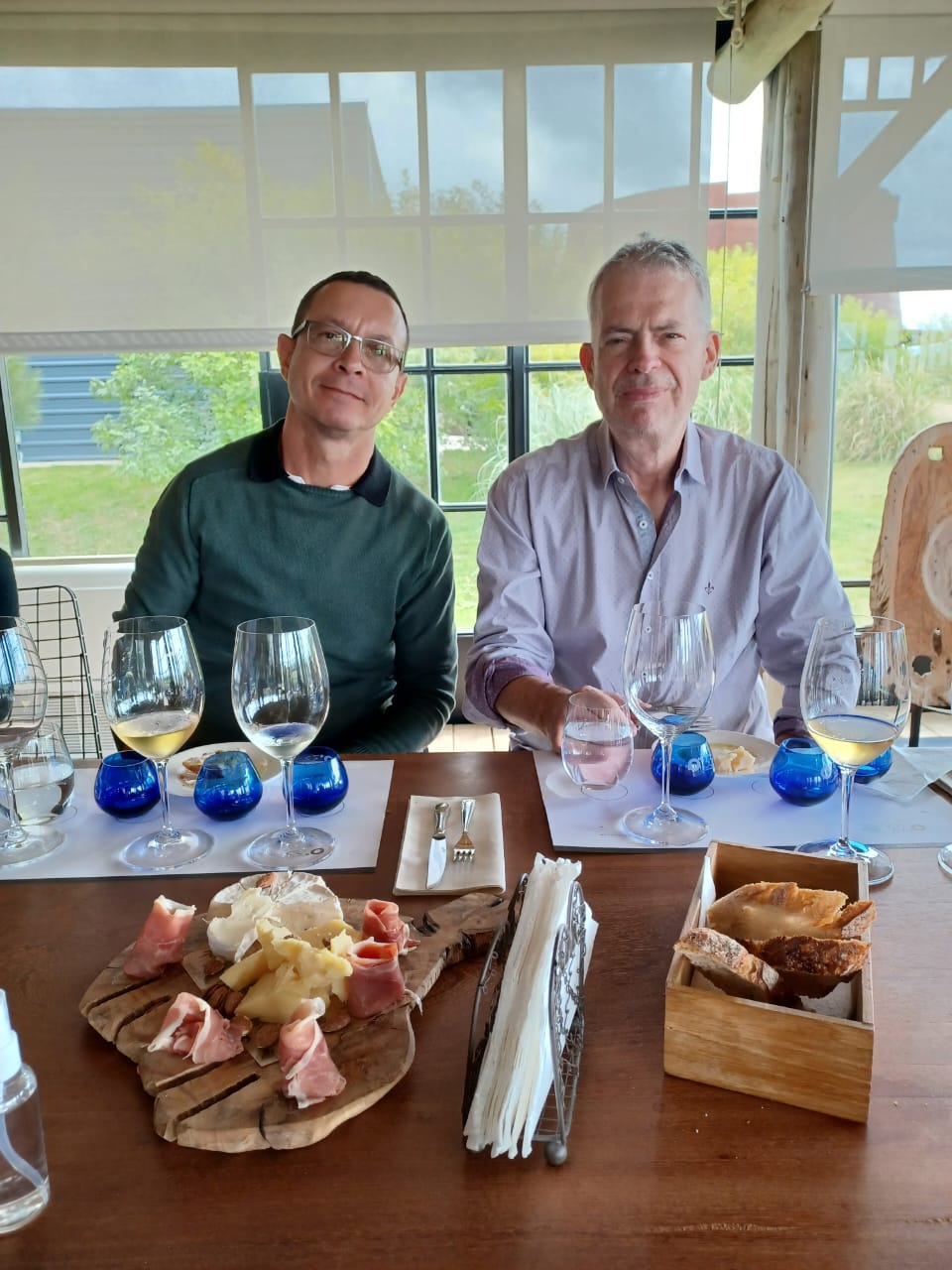 Dia seguinte, fomos à Bodega Pizzorno, vinícola familiar que veio se afirmando ao longo do tempo com seu foco em vinhos de qualidade, dentre os quais está o vinho ícone Primo. Em seguida, parada nas Bodegas Carrau, uma das mais tradicionais do país (sua história familiar teve início em 1752), onde tivemos a gentil recepção da enóloga e dos proprietários Javier e Ignácio Carrau. O vinho ícone da uva tannat é o Amat e eu me surpreendi com a produção um vinho branco feito da uva Petit Manseng, do sudoeste francês.